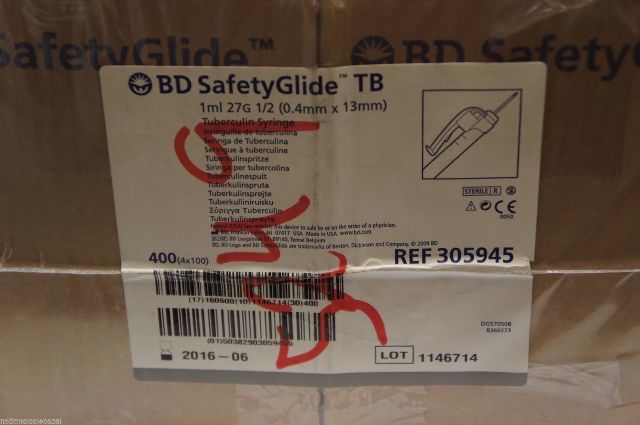 - 305945 ~ BD TB Tuberculin Sringe 1ml 27G 1/2 ~ Box of 400