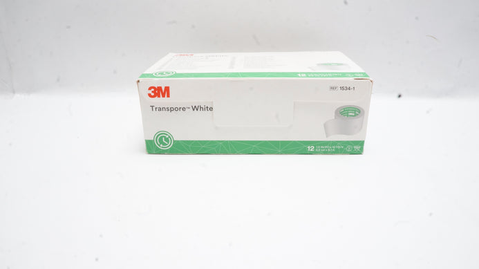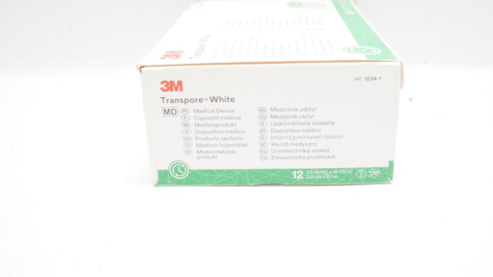 - 3M 1534-1 Transpore White Surgical Tape, White 1inch x 10yd - Box of 12