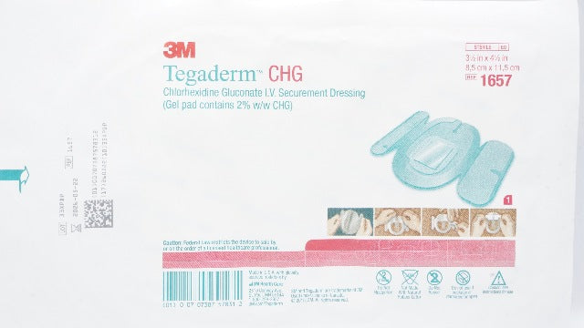 3M 1657 Tegaderm CHG Chlorhexidine Gluconate I.V. Dressing 3-1/2inch x 4-1/2inch