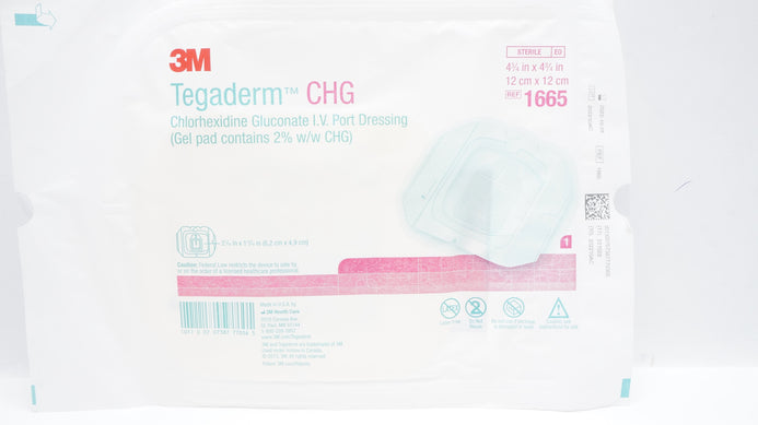 - 3M 1665 Tegaderm CHG Chlorhexidine Gluconate IV Port Dressing 4 3/4 x 4 3/4in(x)