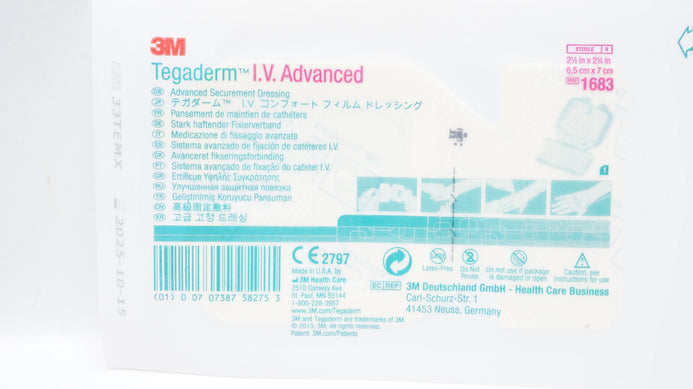 - 3M 1683 Tegaderm I.V. Advanced Securement Dressing 2-1/2inch x 2-3/4inch
