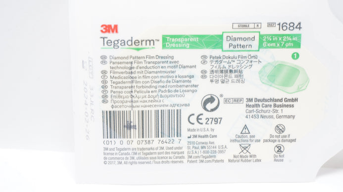- 3M 1684 Tegaderm Diamond Pattern Film Dressing 2-3/8inch x 2-3/4inch (x)