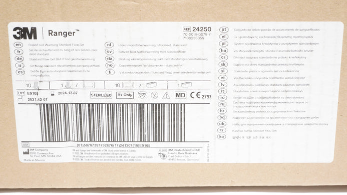 - 3M 24250 Ranger Standard Flow Blood/Fluid Warming Set (x) - Case of 10