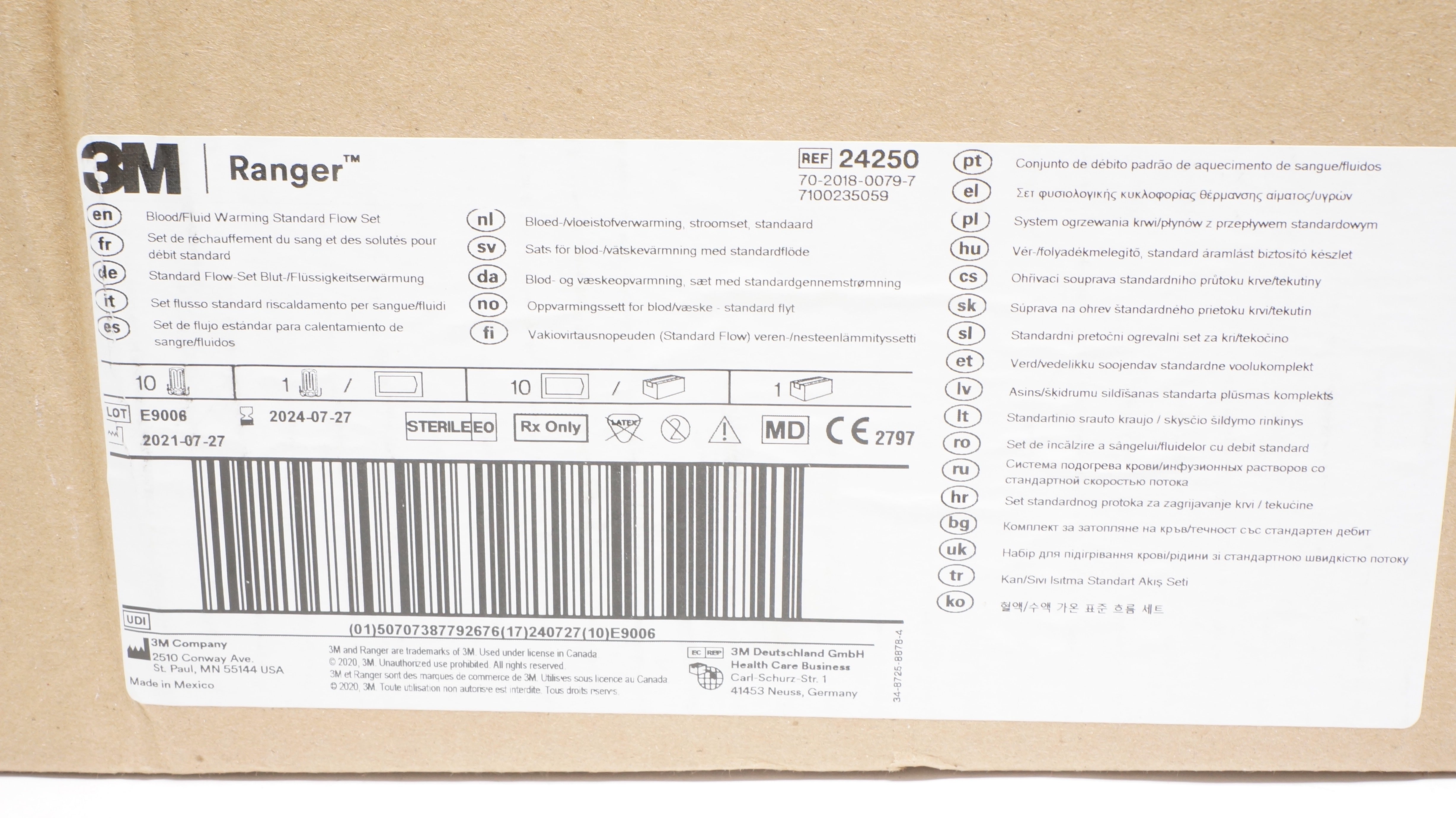 - 3M 24250 Ranger Standard Flow Blood/Fluid Warming Set (x) - Case of 10
