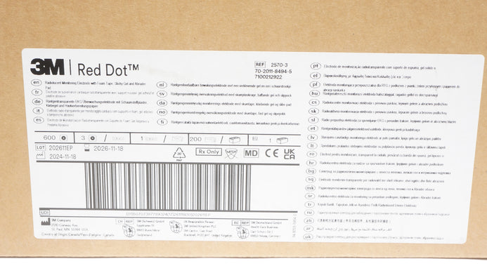 - 3M 2570-3 Red Dot Radiolucent Monitoring Electrode - Box of 200