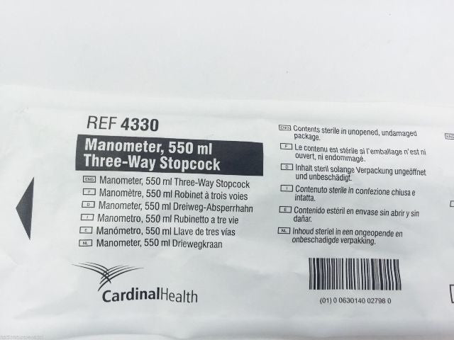 4330 ~ Cardinal Health Manometer 550ml Three-Way Stopcock (x) ~ Lot of 2