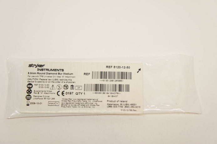- 5120-12-50 ~ Stryker 5.0mm Round Diamond Bur Medium (x)