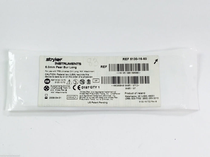 - 5130-16-60 ~ Stryker Pear Bur Long 6.0mm (x)