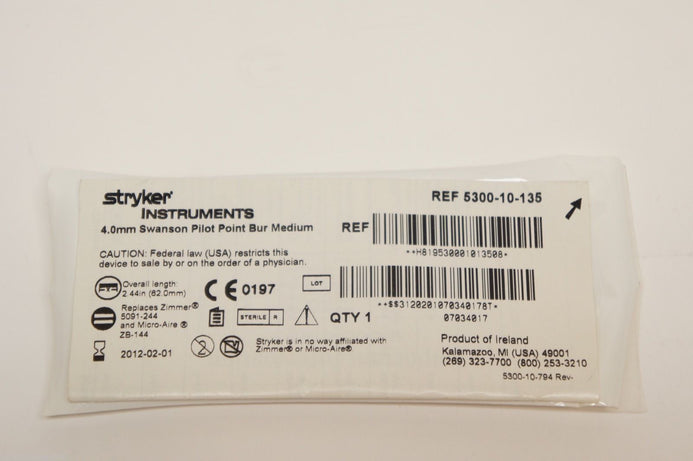- 5300-10-135 ~ Stryker 4.0mm Swanson Pilot Point Bur Medium 2.44in. (x)