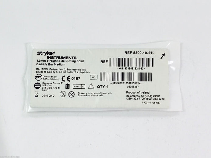 - 5300-10-210 ~ Stryker Straight Side Cutting Solid Carbide Bur Medium 2inch (x)