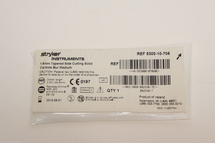 5300-10-708 ~ Stryker 1.5mm Tapered Side Cutting Sold Carbide Bur Medium (x)