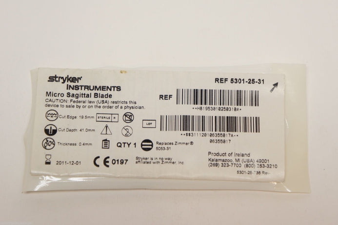 - 5301-25-31 ~ Stryker Micro Sagittal Blade 19.5mm (x)