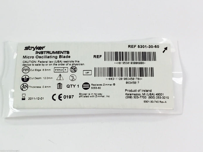 5301-30-60 ~ Stryker Micro Oscillating Blade 6.5mm x 12mm x 0.4mm (x)