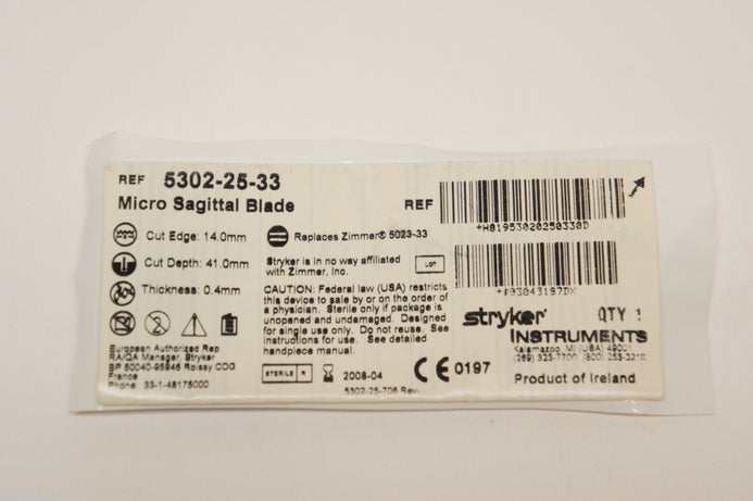 5302-25-33 ~ Stryker Micro Sagittal Blade 14.0mm (x)