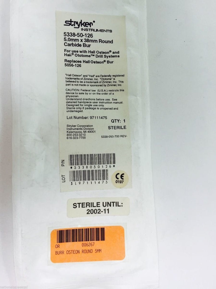 - 5338-50-126 ~ Stryker Round Carbide Bur 5.0mm x 38mm (x)