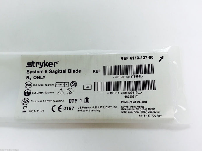 6113-137-90 ~ Stryker System 6 Sagittal Bade 13.0mm x 90.0mm (x)