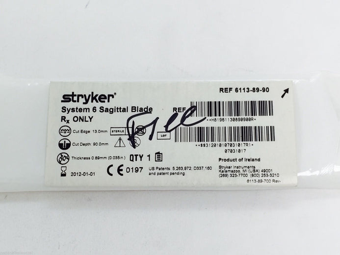 6113-89-90 ~ Stryker System 6 Sagittal Blade 13.0mm x 90.0mm x 0.89mm (x)