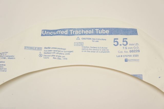 86228 ~ Mallinckrodt Uncuffed Trach Tube 5.5mm I.D. ~ Lot of 5