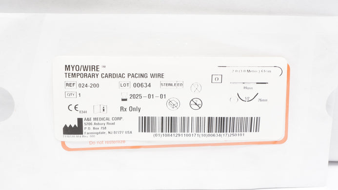 - A&E Medical 024-200 2.0 Myo/Wire Temporary Cardiac Pacing Wire 1/2 26 x 89mm (x)