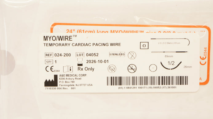 - A&E Medical 024-200 2-0 Myo/Wire Temporary Cardiac Pacing Wire 1/2c 26x89mmx61cm