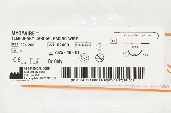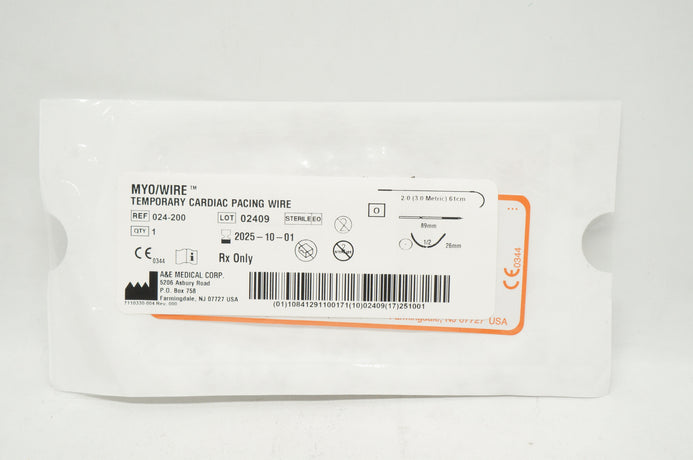 - A&E Medical 024-200 2-0 Myo/Wire Temporary Cardiac Pacing Wire 61cm 1/2 26mm