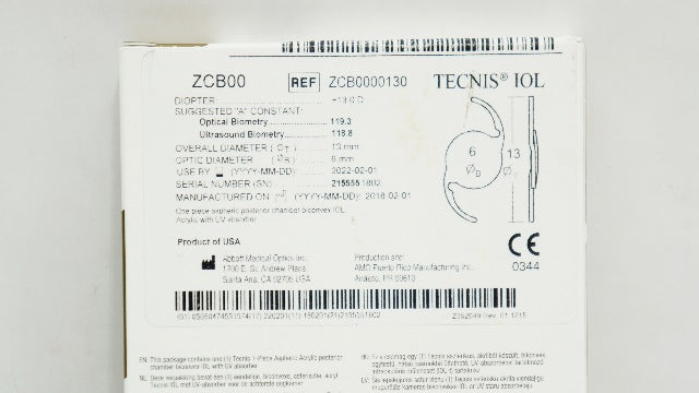 - Abbot Medical ZCB0000130 1 Tecnis 10L Acrylic Aspheric ZCB00 + 13.0D (x)
