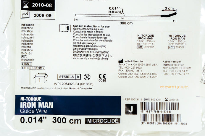 - Abbott 1001311J Hi-Torque Iron Man Guide Wire 0.014inch x 300cm (x)