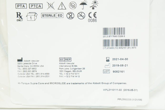 Abbott 1002703-01 Hi-Torque Supra Core 35 Guide Wire 0.035inch x 190cm