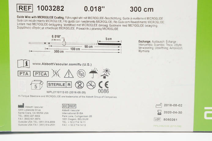 - Abbott 1003282 Hi-Torque Steelcore 18 Guide Wire 0.018inch x 300cm (x)- Box of 5