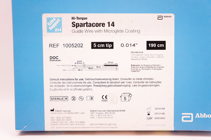 Abbott 1005202 Hi-Torque Spartacore 14 Guide Wire 5cm x 0.014inch (x) - Box of 5