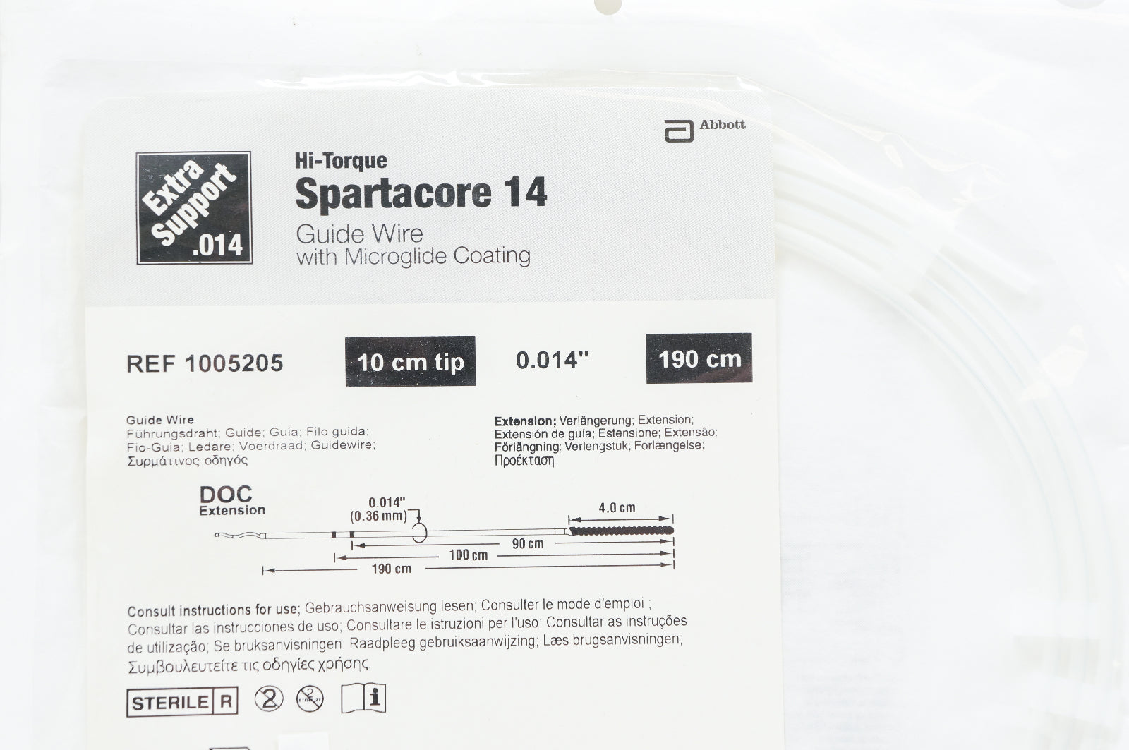Abbott 1005205 Hi-Torque Spartacore 14 Guide Wire 0.014inch x 10cm x 190cm (x)