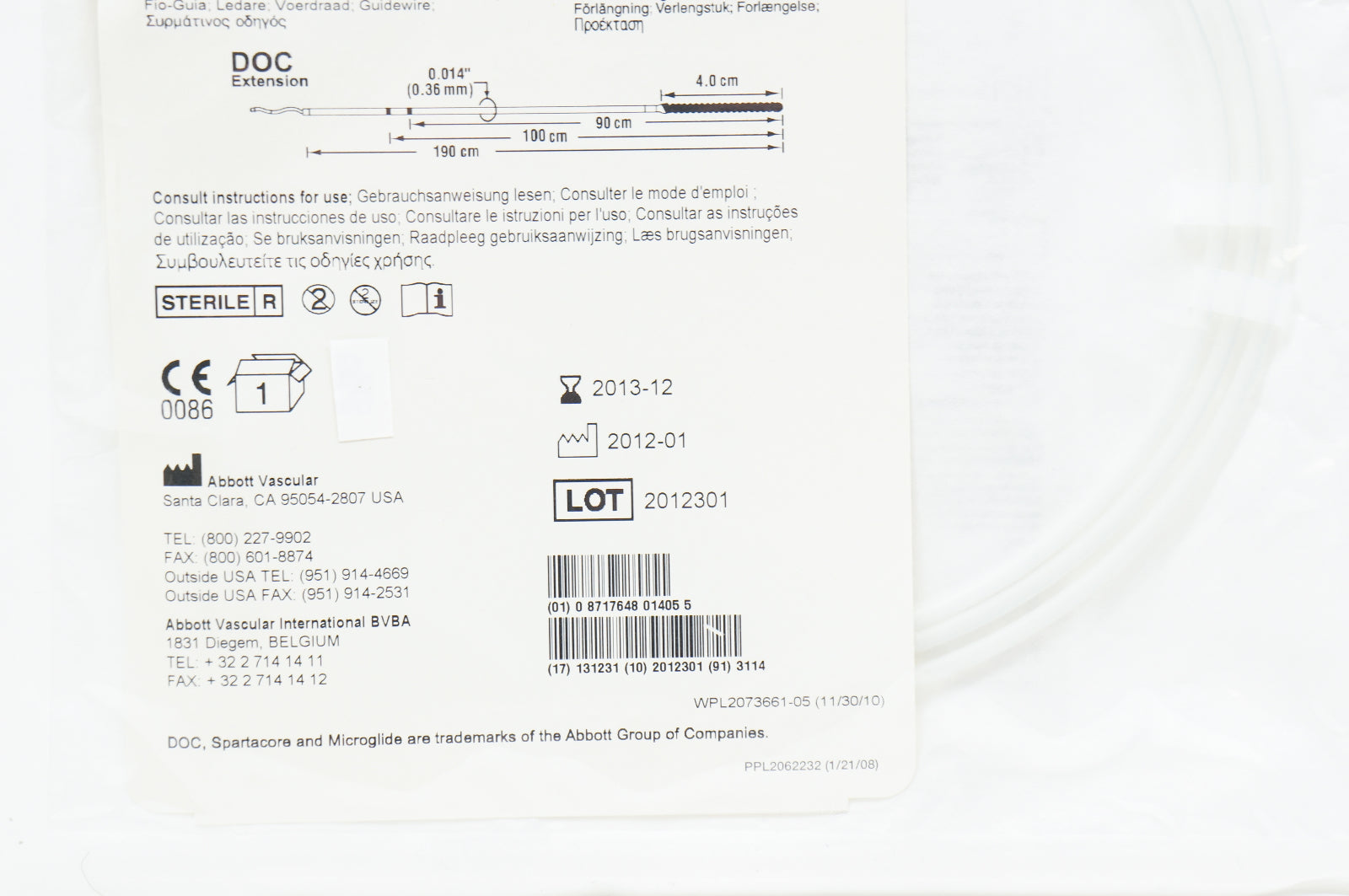 Abbott 1005205 Hi-Torque Spartacore 14 Guide Wire 0.014inch x 10cm x 190cm