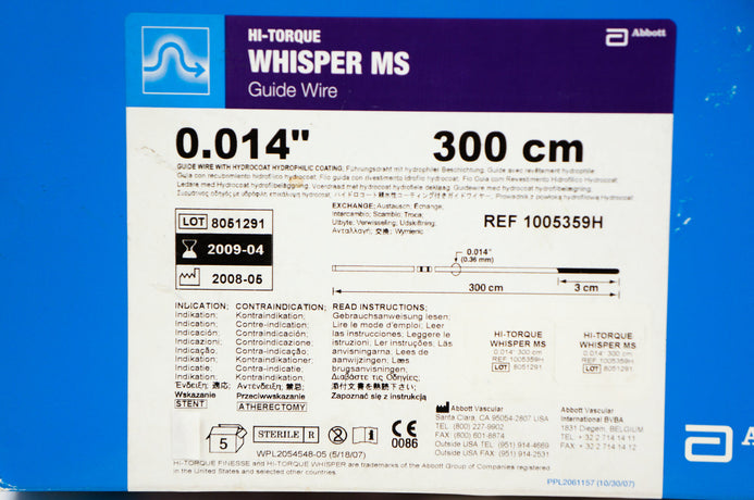 Abbott 1005359H Hi-Torque Whisper MS Guide Wire 0.014inch x 300cm (x)