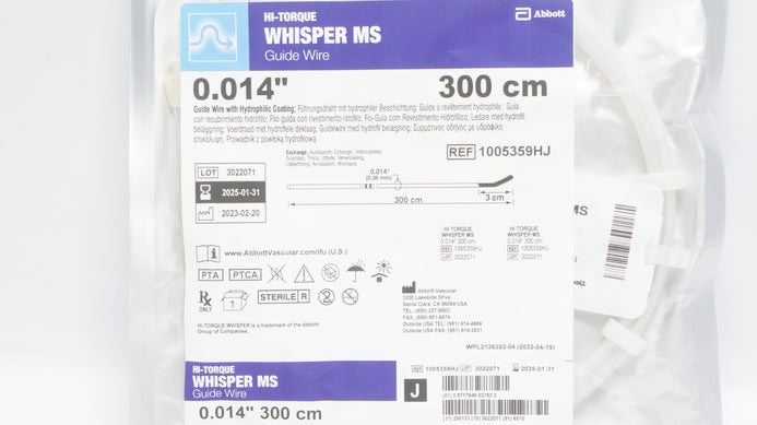 Abbott 1005359HJ Hi-Torque Whisper MS Guide Wire 0.014inch x 300cm