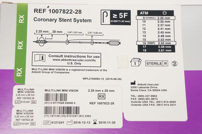 - Abbott 1007822-28 Multi-Link Mini Vision Coronary Stnt 2.25mm x 28mm (x)