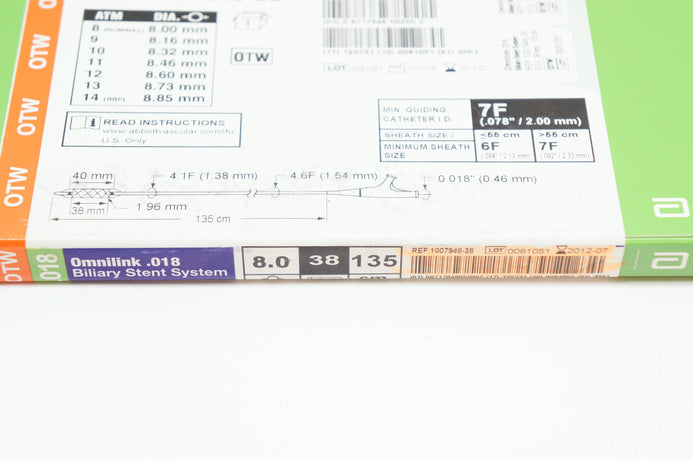 Abbott 1007948-38 Omnilink 0.018 Biliary Stnt System 8.0 x 38mm, 135cm (x)