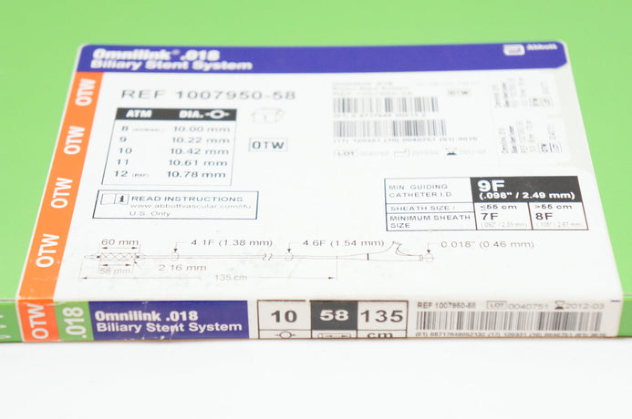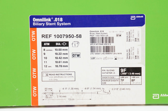 - Abbott 1007950-58 Omnilink 0.018 Biliary Stnt System 10 x 58mm, 135cm (x)