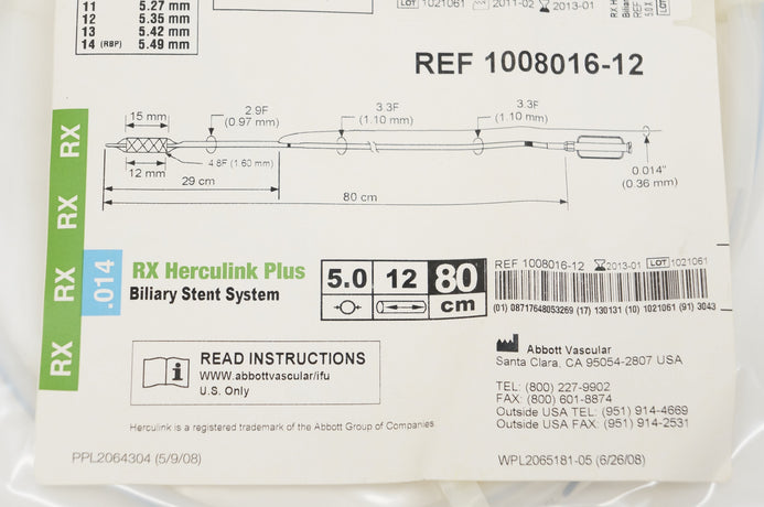 - Abbott 1008016-12 RX Herculink Plus Biliary Stnt System 5 x 12 x 80cm (x)