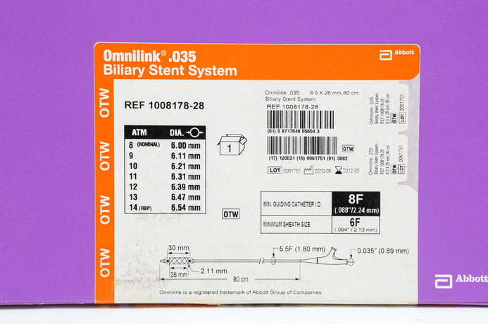 - Abbott 1008178-28 Omnilink .035 Biliary Stnt System 6.0 x 28mm, 80cm (x)