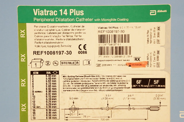 Abbott 1008197-30 Viatrac 14 Plus Peripheral Dilatation Cath. 6.0 x 30mm x 135cm