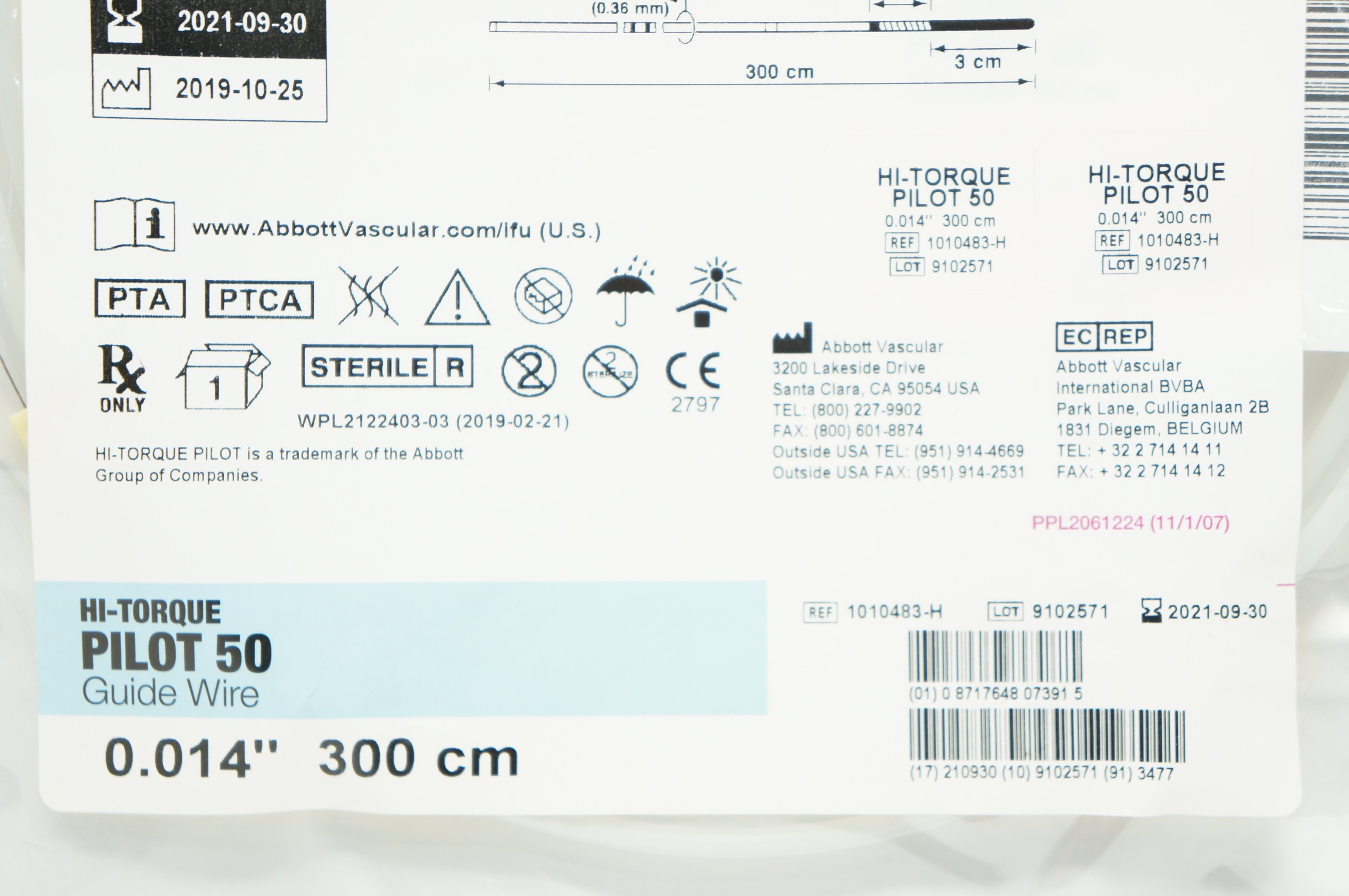 Abbott 1010483-H Hi-Torque PILOT 50 Guide Wire 0.014in. x 300cm (x)