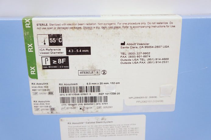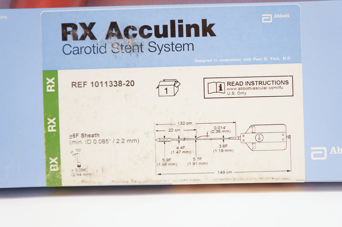 - Abbott 1011338-20 RX Acculink Carotid Stent System 6.0 x 20mm, 132cm (x)