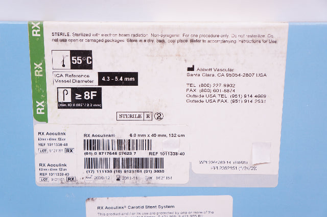 Abbott 1011338-40 RX Acculink Carotid Stent System 6.0 x 40 x 132cm