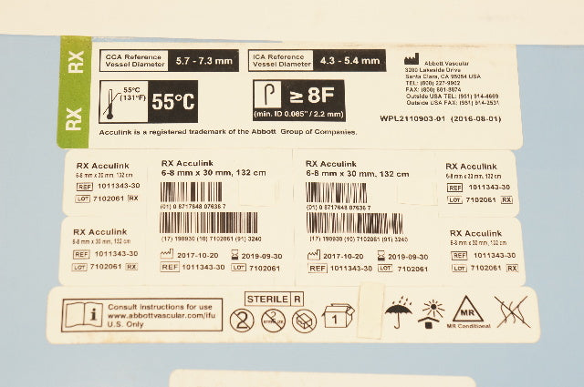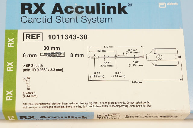 - Abbott 1011343-30 RX Acculink Carotid Stnt System 6-8mm x 30mm, 132cm (x)