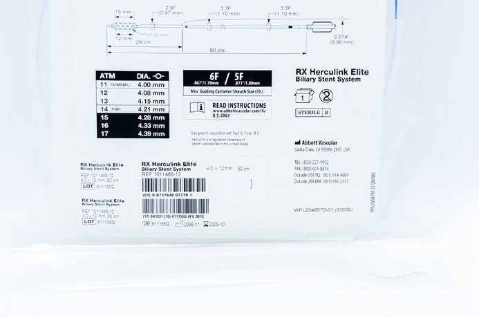 Abbott 1011486-12 RX Herculink Elite Biliary Stnt System 4.0 x 12mm, 80cm (x)