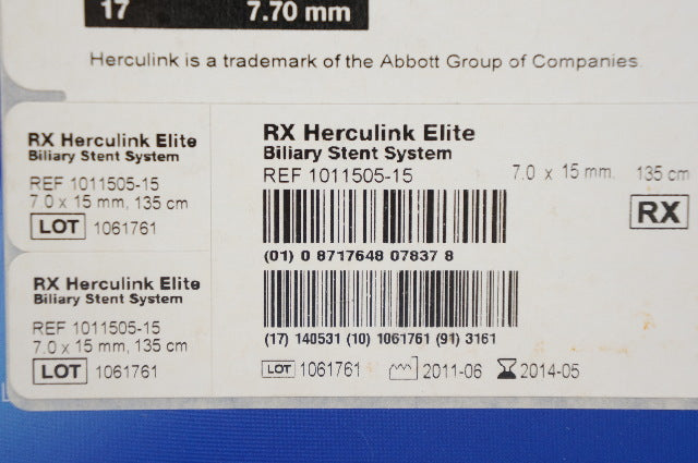 - Abbott 1011505-15 RX Herculink Elite Biliary Stnt System 7 x 15mm, 135cm (x)