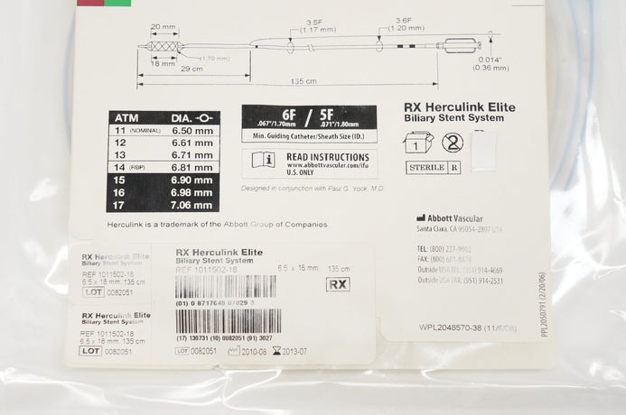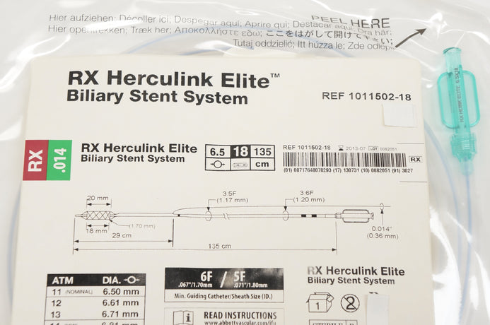 - Abbott 10115202-18 RX Herculink Elite Biliary Stnt System 6.5 x 18mm, 135cm (x)