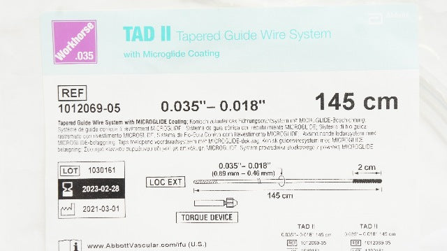 - Abbott 1012069-05 TAD II Tapered GuideWire System 0.035- 0.018inch, 145cm (x)