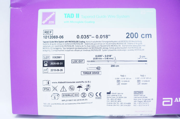 - Abbott 1012069-06 TAD II Tapered Guide Wire 0.035in. - 0.018in. x 200cm - Box of 5