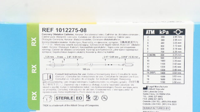 - Abbott 1012275-08 Trek Coronary Dilatation Cath. 3.25mm x 8mm x 145cm (x)